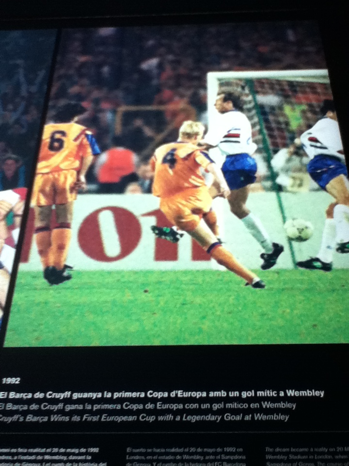 Another room featured a massive interactive area where you could see video clips of goals and events from all of the club’s history. I saw a great Lineker hat-trick vs Real Madrid, the moment where Maradona had his legs sawn off, Archibald knocking one in against Juventus, Messi’s first match, Iniesta with more hair, the 2006 vistory over Arsenal, and of course, the thunderbolt free kick by Ronald Koeman at Wembley.