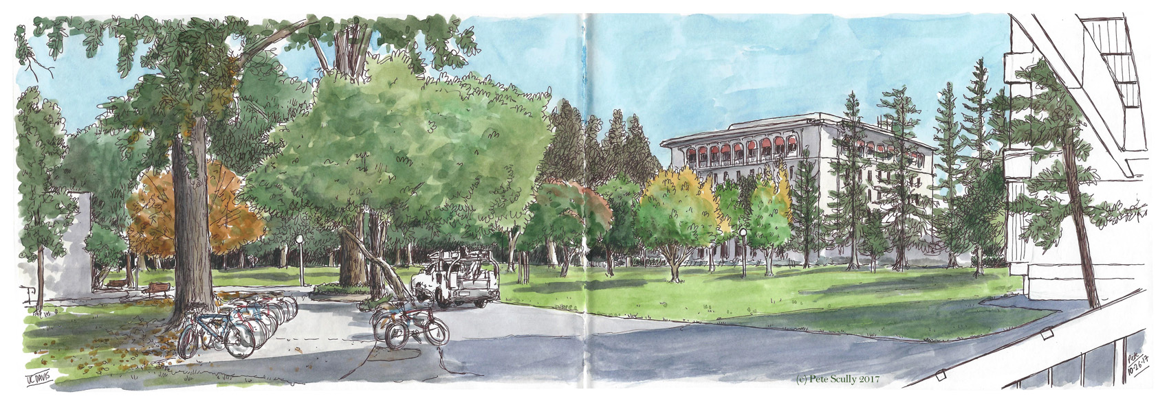 Yes, I have posted it before but here it is again to round off the daytrip. It’s the big Christmas Tree in Union Square. It was busy, lost of people stopped to take pictures with the tree (a lady sitting nearby was asked many times by people to take their photos, she was very obliging; nobody asked me, I was sat above, my head buried in a sketchbook). I did draw a couple taking a selfie though because that’s the thing nowadays, actually people have always done it even with their old cameras but it didn’t seem to offend grumpy people as much. Seriously, people who get irritated by people taking selfies, get over it. I know the standard response to that is “seriously, people who get irritated by people who get irritated by people taking selfies, get over it” but if you start down that road you end up on a continuous looping paradox of nonsensical arguments (aka Twitter) (or aka everywhere these days). Anyway, after this sketch, the sunlight fading faster than fog in a funfair, I switched into hapless Christmas shopper mode and spent the rest of the day making the wallet a bit lighter. And then I caught the train back home to Davis.