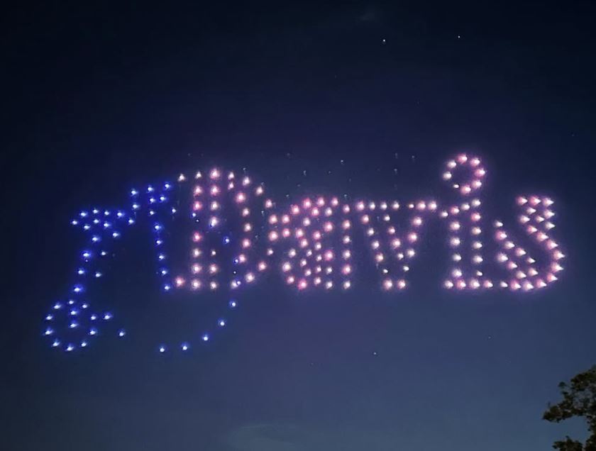 And then we watched the Drone show, which was a first for Davis I think (did they have it last year? I don’t remember). We saw the drones rise from the field like an army of robots in a sci-fi film. We are very much in the future now, the idea of something like this did not exist when I first moved to America. They formed into the logo of the City of Davis, and then slowly formed into a series of other Davis related shapes – bikes, double-decker buses, a large deformed frog, it was fun guessing what was what – plus some logos of sponsoring businesses. It was fun, I enjoyed it. The fireworks are not completely going away, we still had them on July 4 (my cats hid under the couch), but this was a creative new addition to the event. After this, we took the short walk home. It’s nice living close to these events.