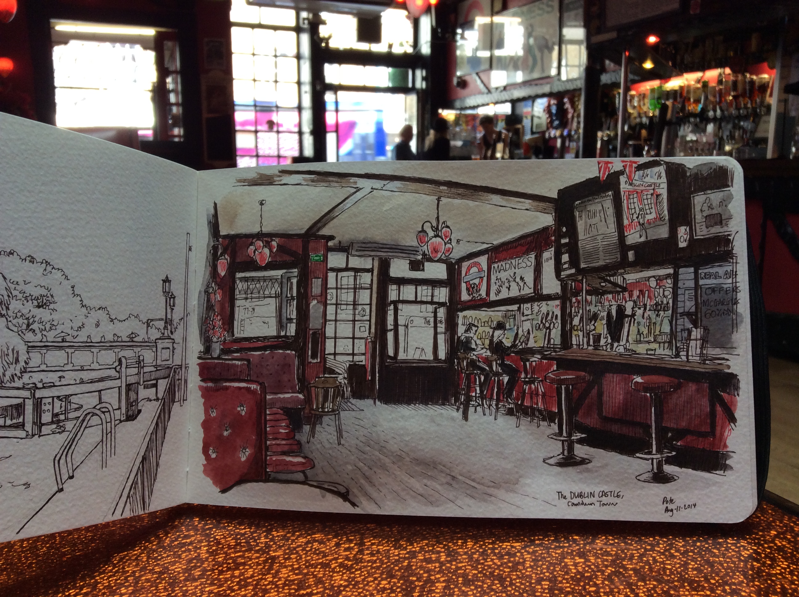 It feels weird that this ended up being my only sketch in Ireland, having waited all these years to come back, but it was a pretty busy family trip, we rushed here and there about Dublin and took the train down to the beach at Bray, and then flew back to London. I did go back to the Brazen Head the second night we were there with my wife to watch some of the live Irish music, a bunch of guys surrounded by tourists sat on bar-couches playing traditional music. Sure, the sort you get in Irish-themed pubs everywhere, but this was in your actual Ireland and that was good enough. This was a brief trip, but it was really nice to be back. And I even stocked up on my favourite chocolate bar, Cadbury’s Tiffin. Erin go Bragh!