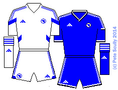 • BOSNIA-HERZEGOVINA: (Adidas) bosniaFirst World Cup for Bosnia-Herzegovina, who were previously in a Legea kit, but they obviously decided last minute that Legea were too non-league for them and switched to Adidas, who to be fair quickly gave them a template you’d probably find in the non-league. Boring. But World Cup kits aren’t always interesting.  Not like I devote hours and hours of my time to them or anything…